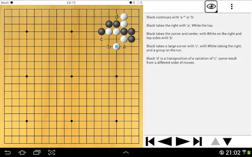 - Use a bot player (separate download) as an opponent or analysis helper. The bot is activated as just another tool, to be used in any SGF! Check out BW-Gnu Go on the Play Store for details.