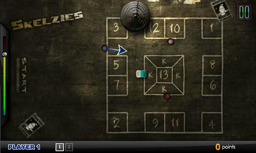 Skelzies (Skelly, Skully, Skelsies) is a game played on the streets of New York. A board is drawn on the asphalt of the street with either chalk, or spray paint (for a permanent board). Last cap standing wins.